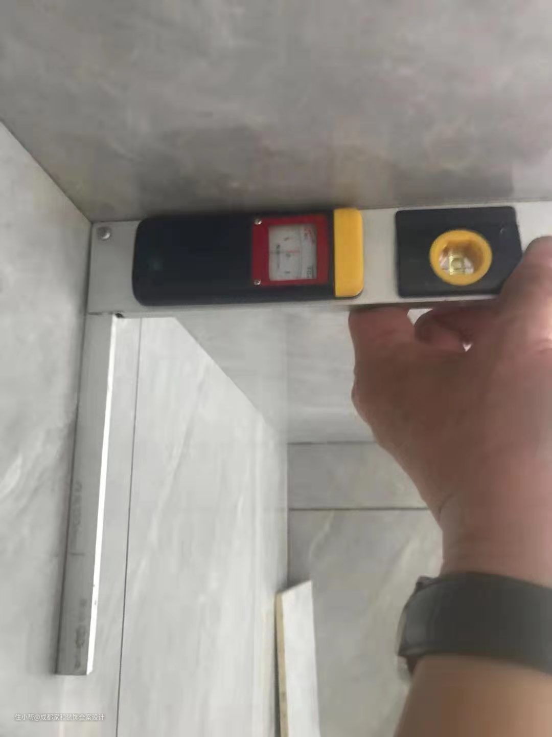 6、铺贴瓷砖应注意表面的平整度,一旦墙面出现高低不平的问题,后续安装橱柜或浴室柜则无法贴合墙面;地面不平整则容易磕绊受伤。所以瓷砖平整度应控制在≤2mm,平直度≤2mm,缝宽符合设计要求,高低差≤1mm。通常使用两米靠尺进行检查验收。