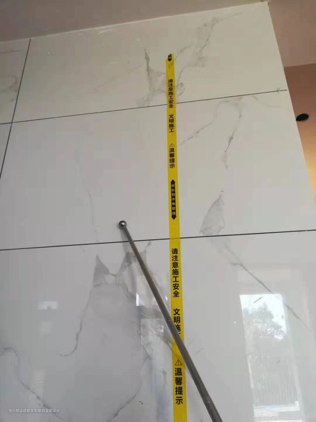 3、瓷砖铺贴施工完成后,应用胶带标注水电线路的位置,避免钻孔时破坏管路造成不必要的损失。
