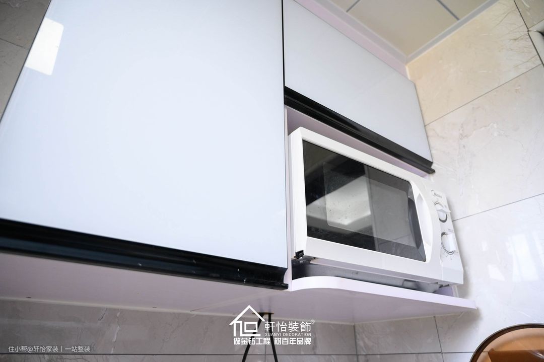 橱柜不仅增大厨房的收纳空间,同时简约的设计,将家具收藏到柜子里,视觉上更加清爽,黑白配的橱柜让厨房变得时尚大气。