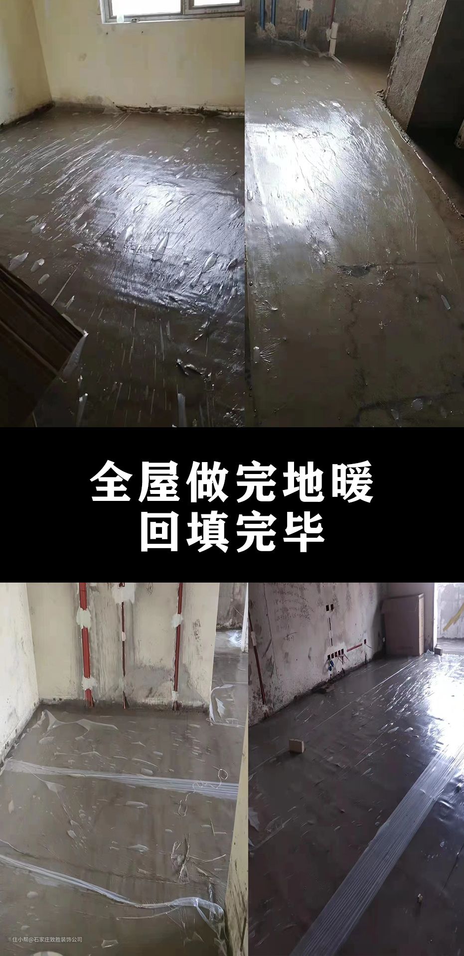 小区原本都是暖气片供暖,业主说本来买的也是旧房,也没有特别的装修,这次失火可能就是让我重新装修一次吧。业主心态很好,很棒的一个姐姐。全屋整改地暖