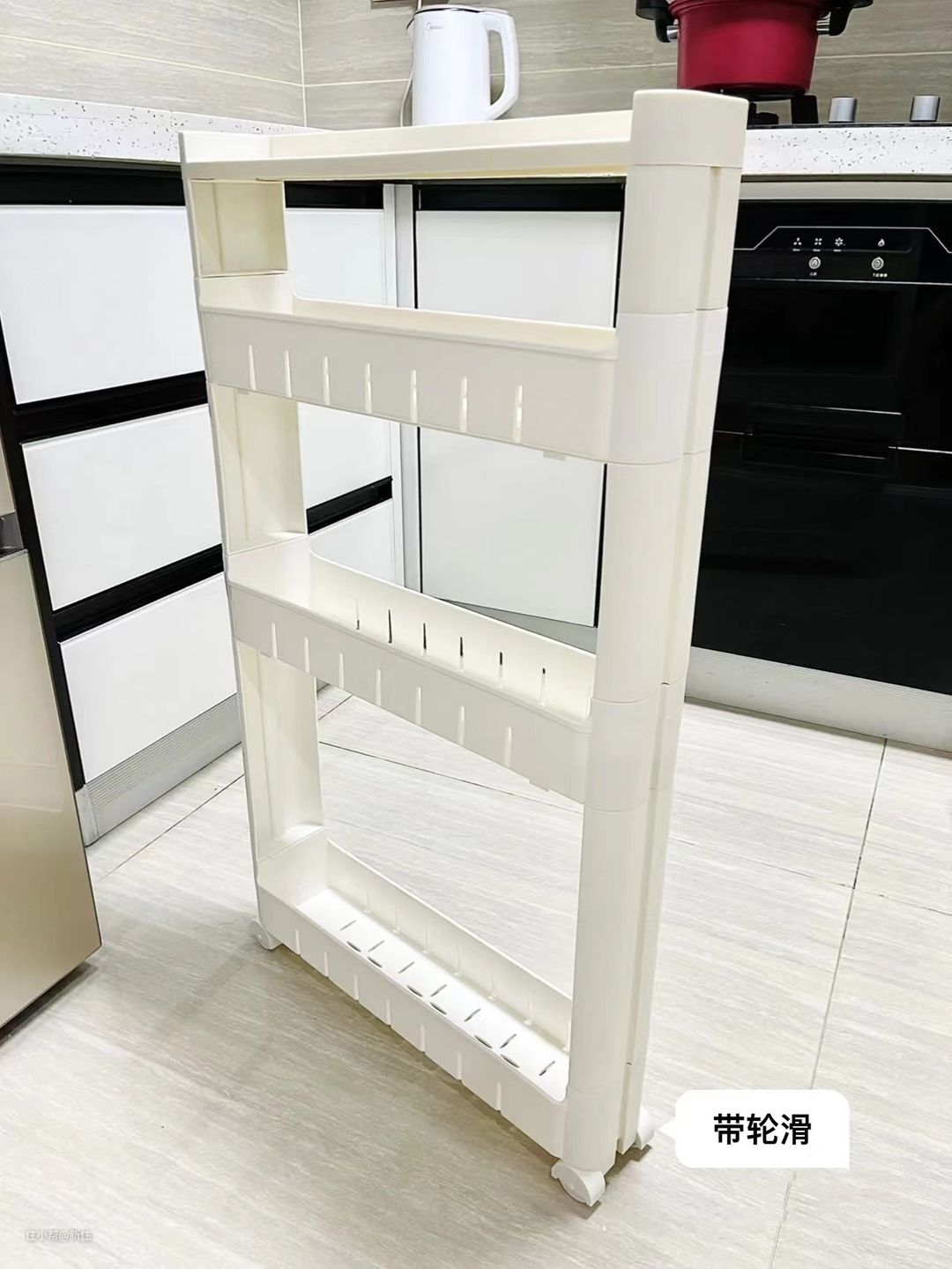 底下带滑轮,放厨房的调味瓶,清洁用品,拿取也方便。