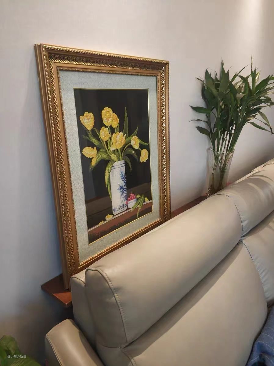 利用沙发后的空隙,摆放一些画框、工艺品,点缀家里,对鸡肋空间的利用很友好,关键还不影响沙发靠背的伸缩。