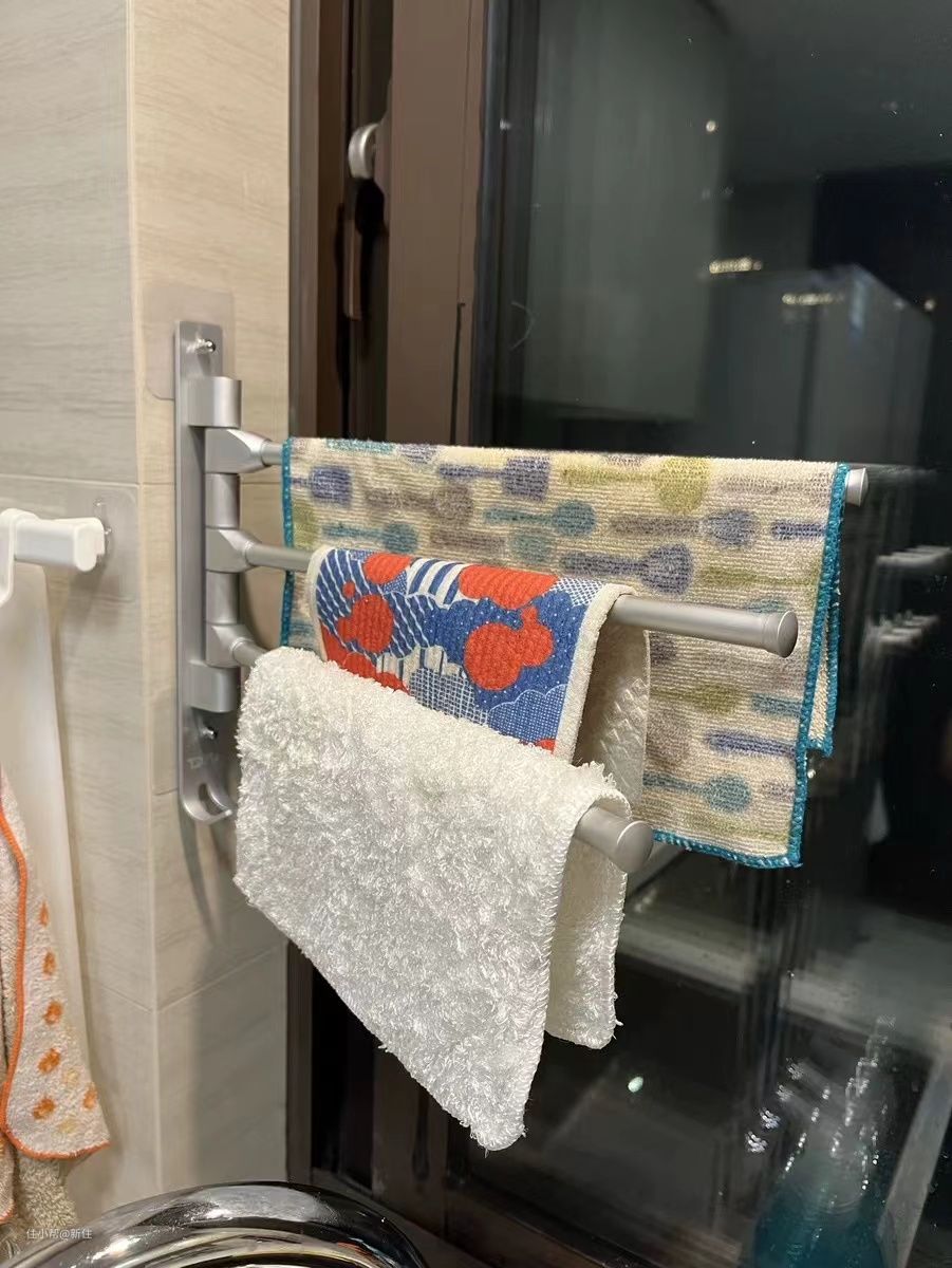 挂杆可以180°旋转,毛巾分层错位悬挂,及时晾干,没有异味。