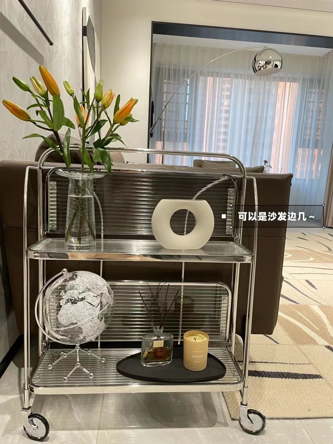 日常当沙发边几用,偶尔需要也能推进卧室,当床头柜用,或者吃火锅的时候,当备菜车用,容量大,拿取也方便。