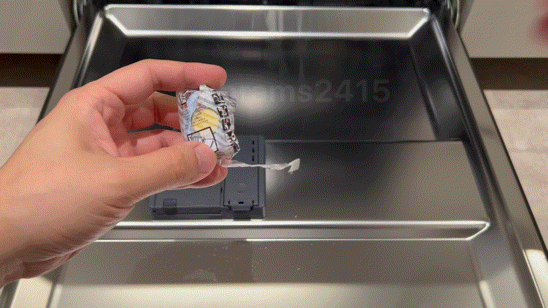 ▲普通用户家里没有中央软化设备的话,需定期购买袋装洗碗机专用盐添加进盐仓。