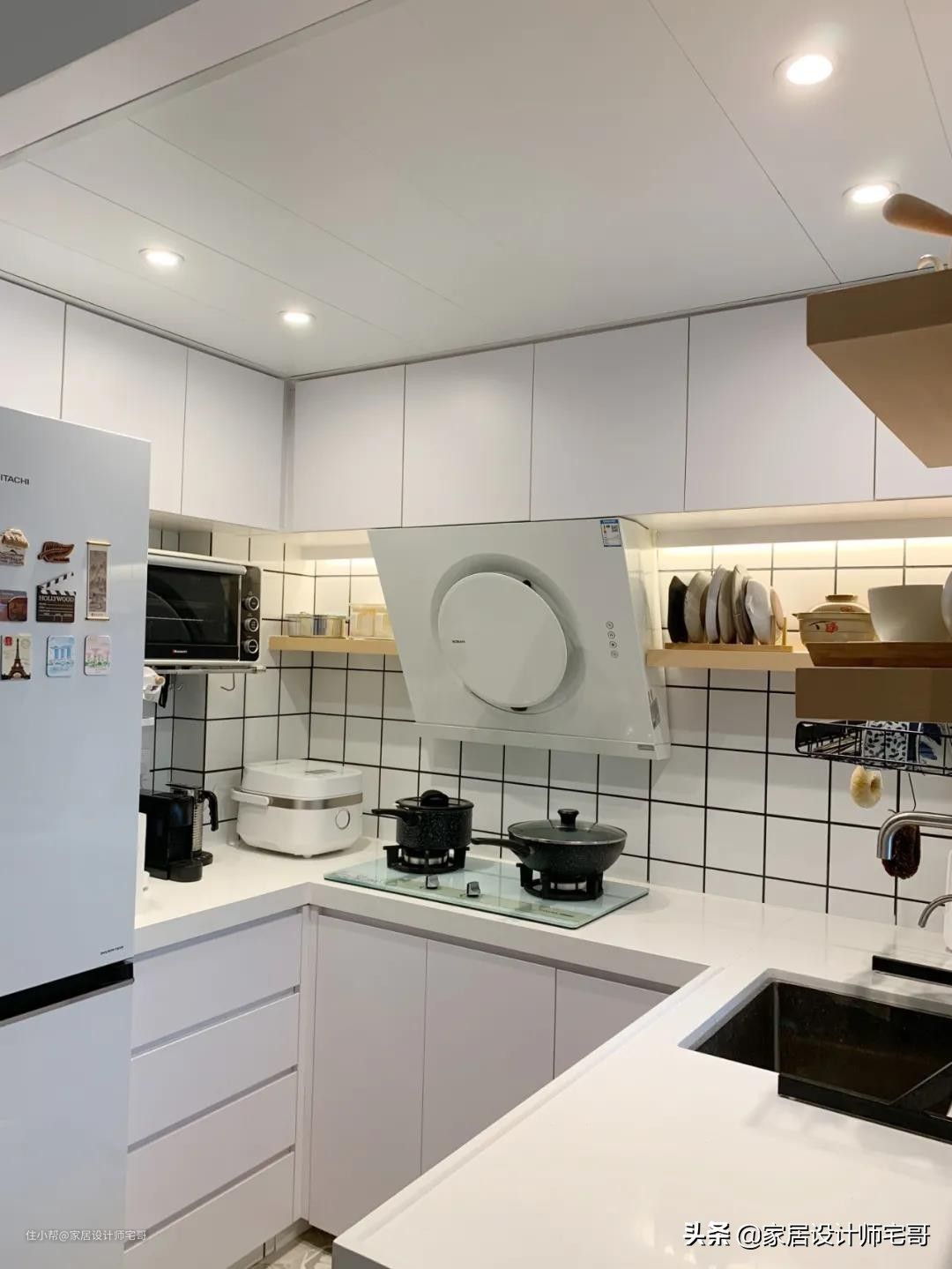 厨房超级干净又利索,奶白色系加上一点原木色的点缀,满满的治愈感。