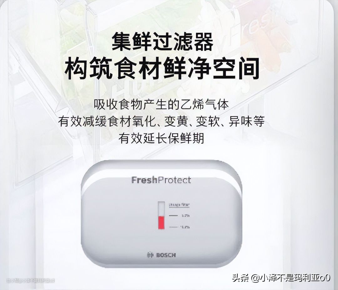 ▼作为博世的高端冰箱,KAN98VA59C最核心的科技就是搭载了博世的活氧除菌净味功能。熟悉博世的小伙伴对这项技术一定很了解了,它不仅运用在冰箱上,还运用在博世洗衣机、烘干机等多条产品线中。