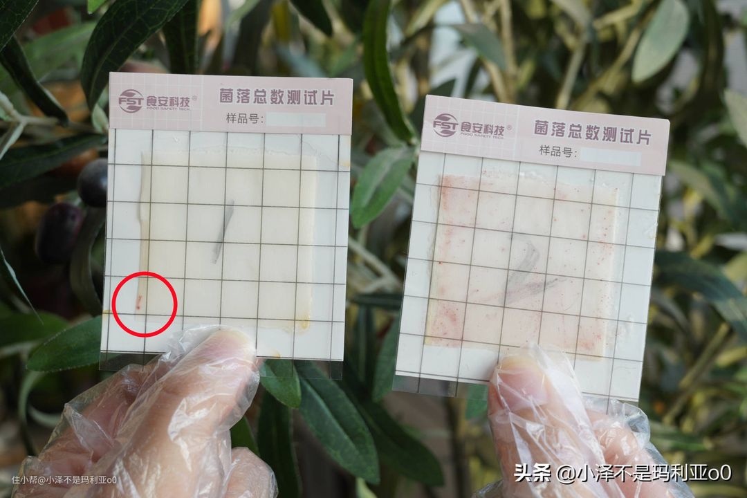 ▼第二步,把菌落试纸分别在博世KAN98VA59C冰箱的隔板,和另外一款不具备除菌功能的冰箱隔板上轻轻按压取样。
