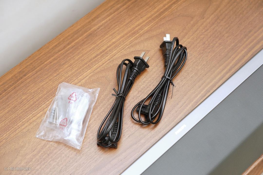 由于飞利浦B8905回音壁音响主打无线连接功能,所以配件也很简单,除了遥控器就是两根电源线,没有其它耗材。