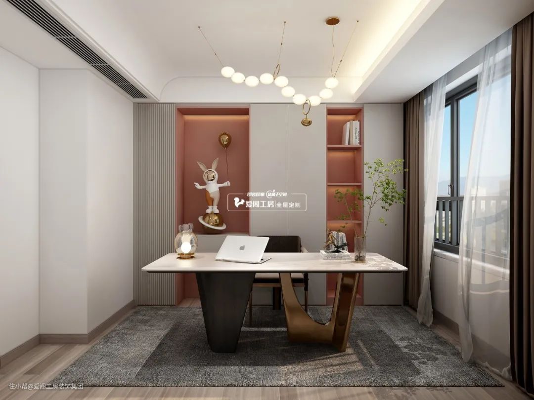 家有闲置的房间或有待客需求,打造独立书房更合适,书桌搭配大面积的收纳柜不仅满足更多的储物需求,环境安静、办公不易受打扰,还能营造私密的洽谈空间。
