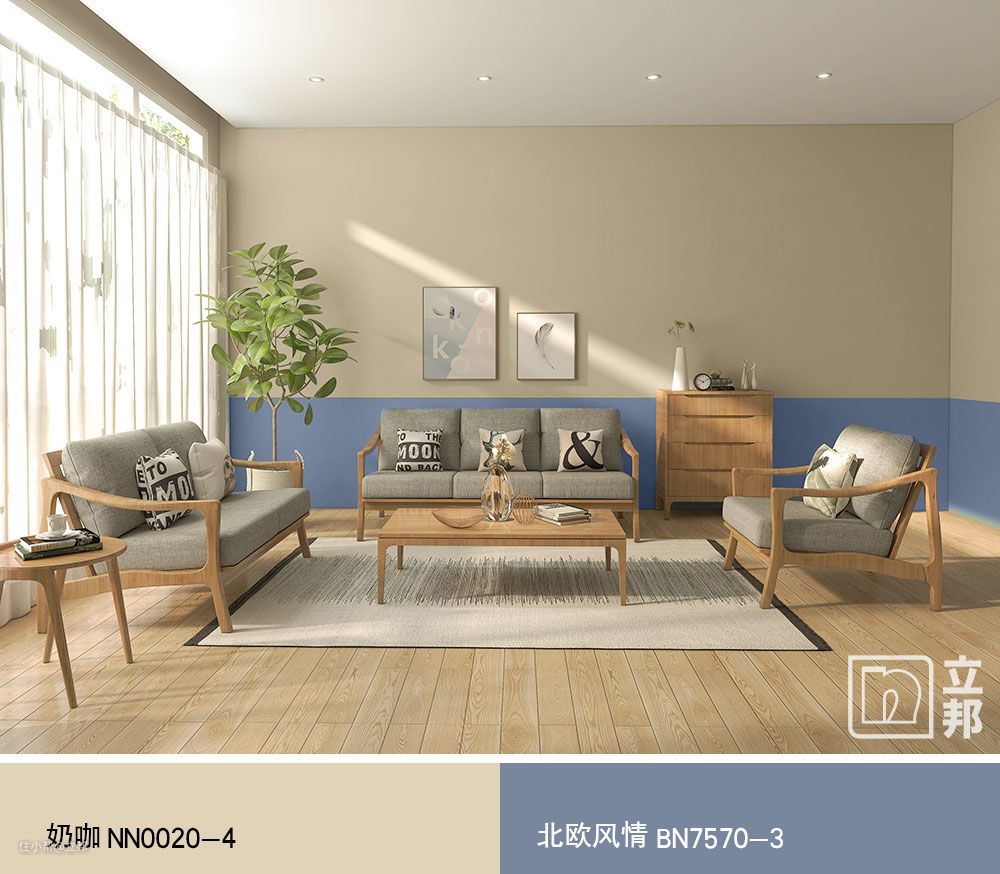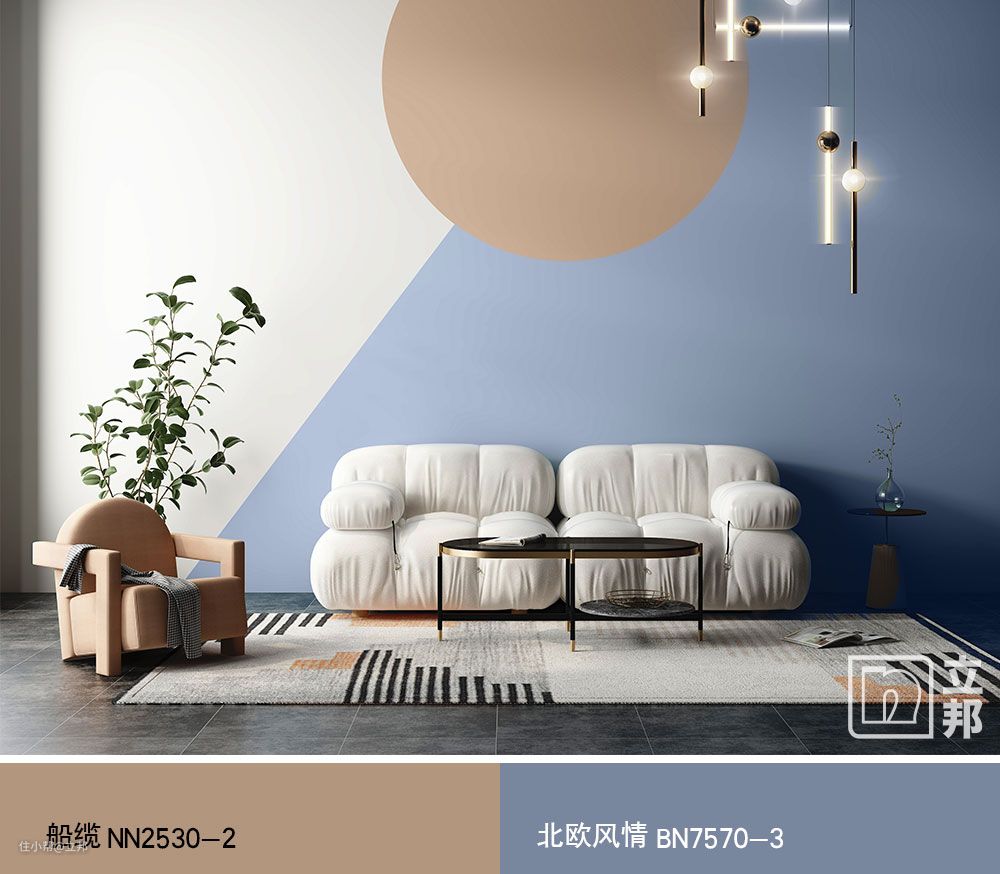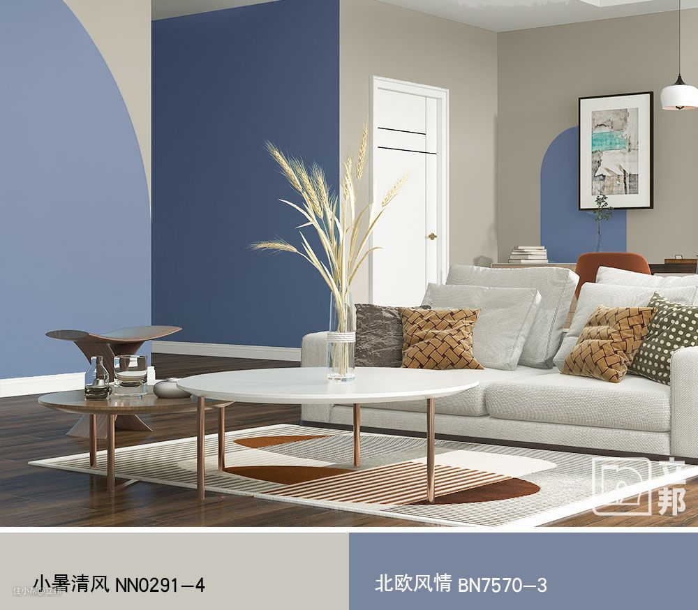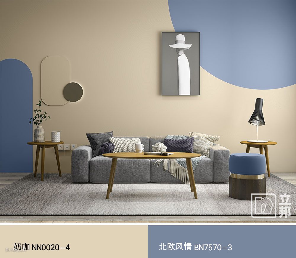 搭配立邦年度主推色北欧风情BN7570-3也非常适合,灰的稳重使蓝色多了一丝优雅,蓝的柔和让灰也不再沉闷,当灰色遇见灰蓝色,简单的搭配也凸显着个性的构思,分分钟俘获你的心。