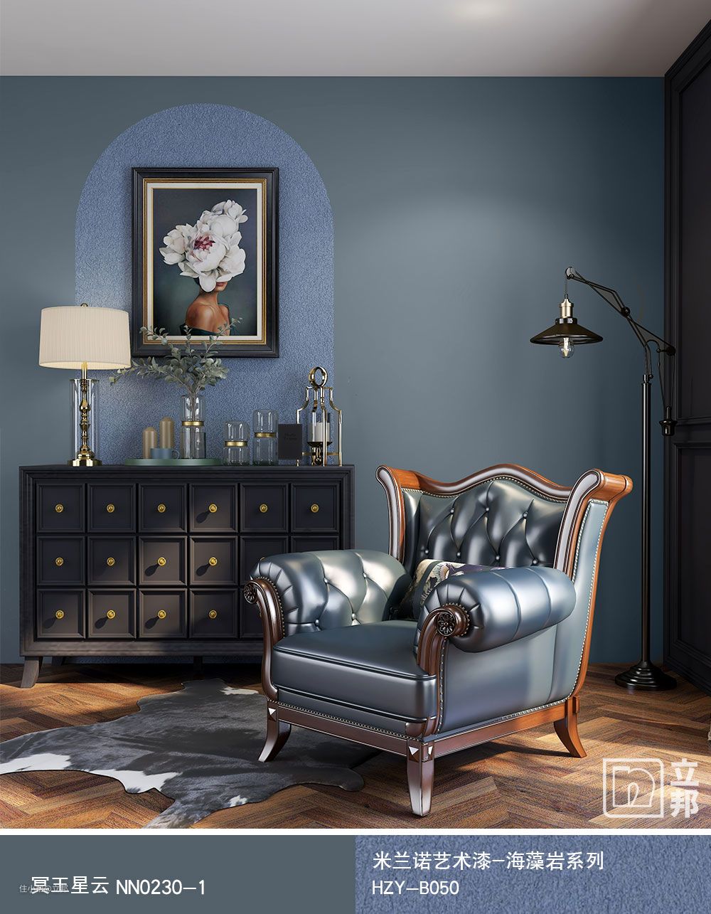 同时搭配立邦艺术漆也会令人眼前一亮,艺术漆软糯柔和的质感可以降低色彩的视觉冲力,让整体搭配更显舒适和亲近。