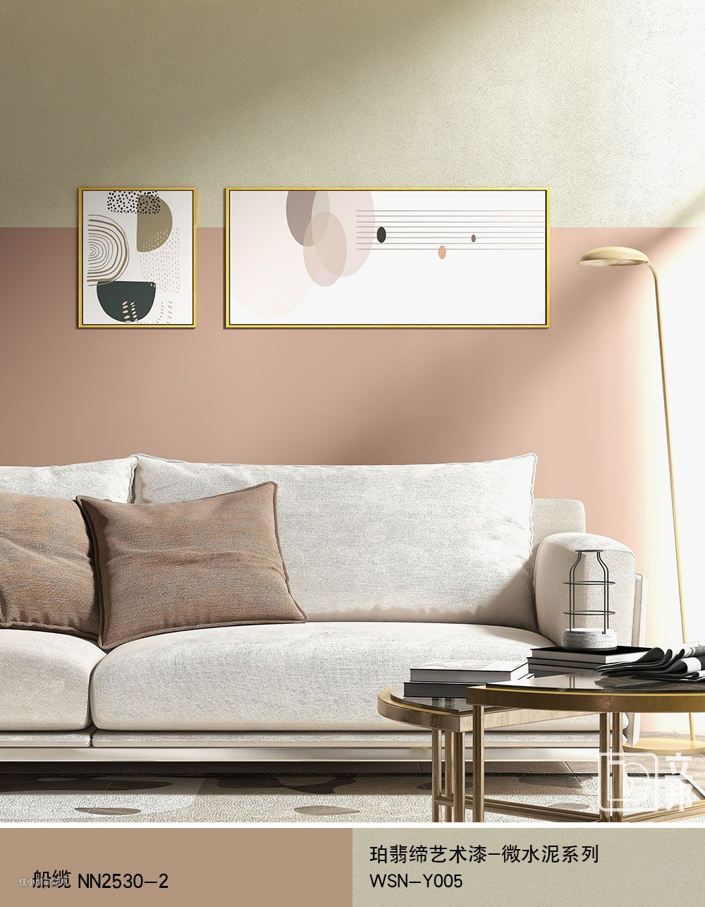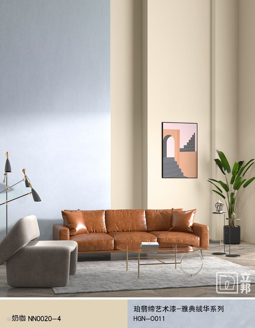 温暖馥郁的奶咖色搭配立邦艺术漆也别有一番风味,艺术漆顺滑的丝绒质感与浅淡柔和的奶咖相结合,让墙面不再冰冷坚硬,也为空间注入丝丝暖意。