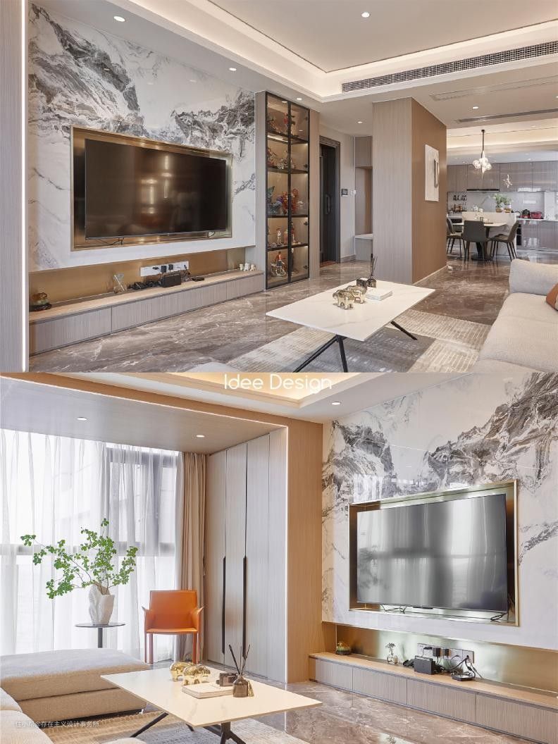大理石+金属做背景墙,将轻奢的精致质感呈现出来