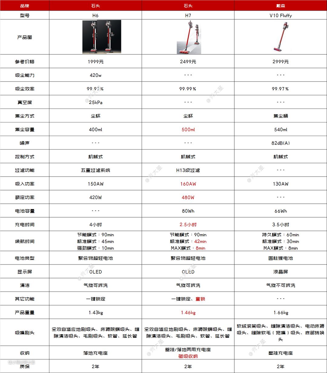 个人认为,H6其实可以满足大部分家庭的使用需求,H7虽然在各项性能上有了提升,尤其是磁吸式的收纳方式非常人性化,但是属于锦上添花,相比500元的差价,我更推荐H6。