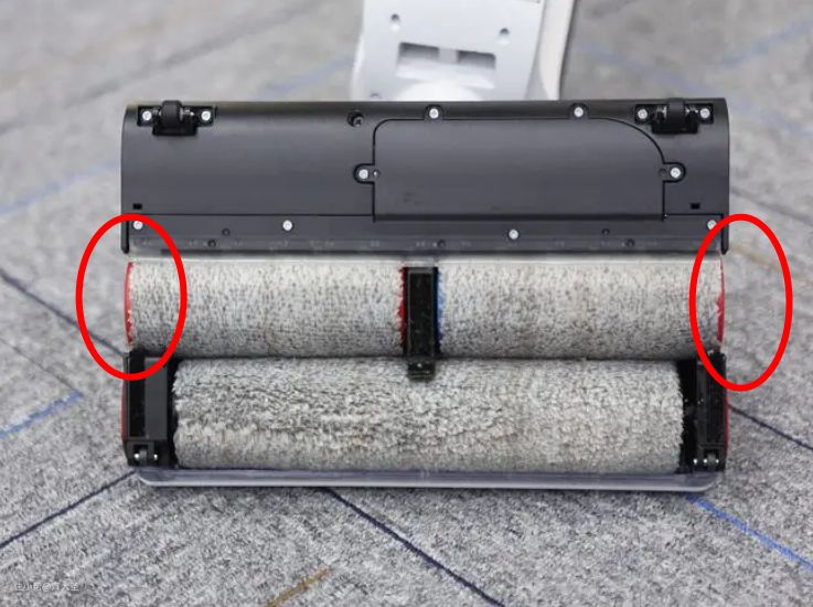 可以看到石头G10拖过一遍后,只能清除表面一部分污渍,并不能拖干净↓