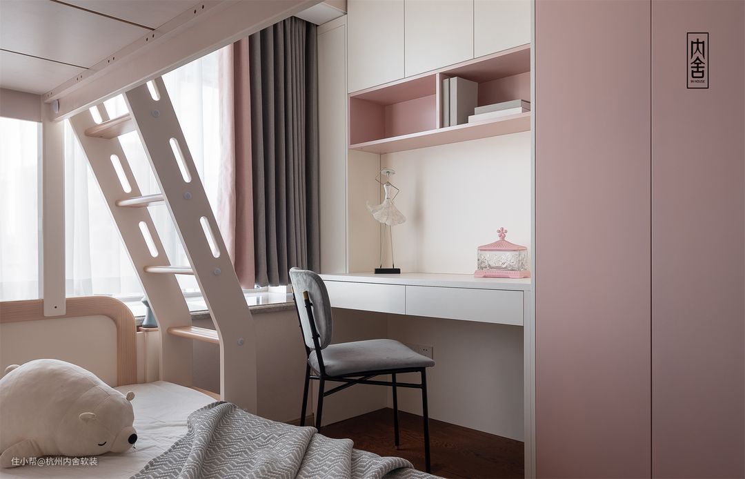 沿用客卧的色调、以粉为主打造有爱的卧室