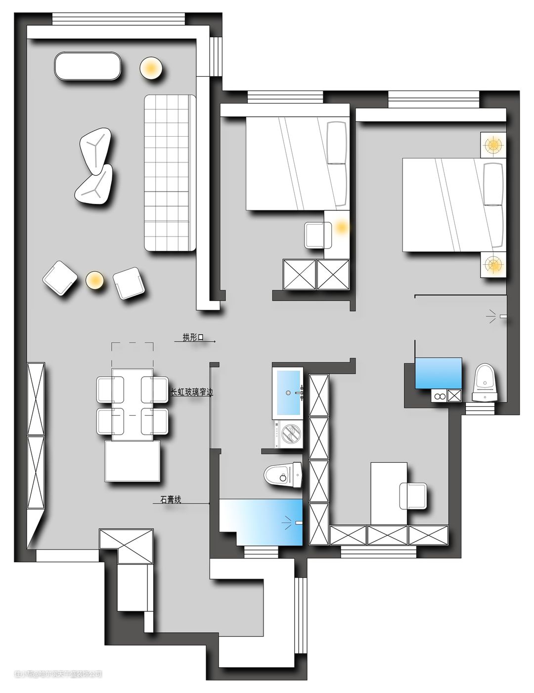 业主是两位新婚不久的夫妻,喜欢造型丰富但不复杂的设计风格,厨房喜欢敞开式设计,以简约法式风格为主。
