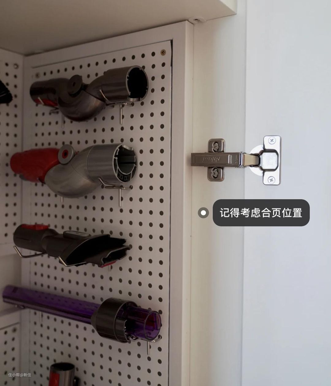 不过,选择洞洞板尺寸时,一定要避开柜门合页位置,省得买回来才发现尺寸不合适、装不上去。
