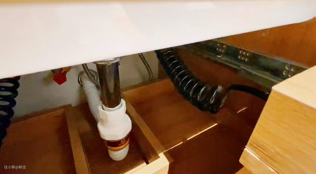 ②有了螺纹线以后,肯定会在抽屉背后占用一定空间,在设计浴室抽屉尺寸时,就要把这部分空间预留出来,防止关门时,螺旋线顶住抽屉;