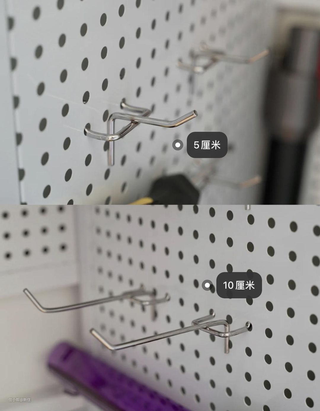 这位屋主选择的是这种小铁架,根据配件的尺寸,有5cm、10cm的,基本可适配所有。