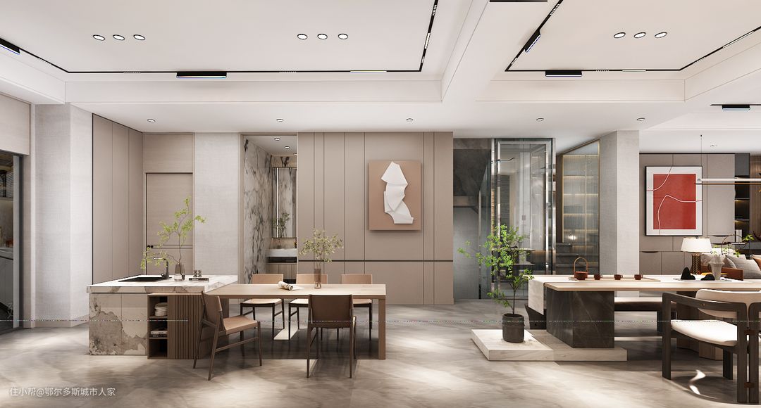 别墅每个空间的划分相较于一般空间的划分,其注重的点也大不相同。大宅别墅的空间衔接过渡更多的是体现主人居住的品味与感受,而非实用功能性为主。这就需要设计师对业主需求有精准把控,来发掘主人内在心灵的精髓,进而透彻的表现出来。