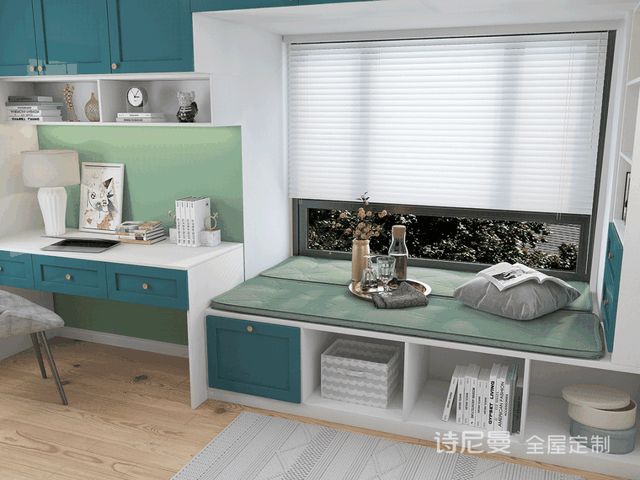 如果是飘窗比较浅或者是可以拆飘窗的户型,下面还能设计几个抽屉,方便放零碎的小物件。