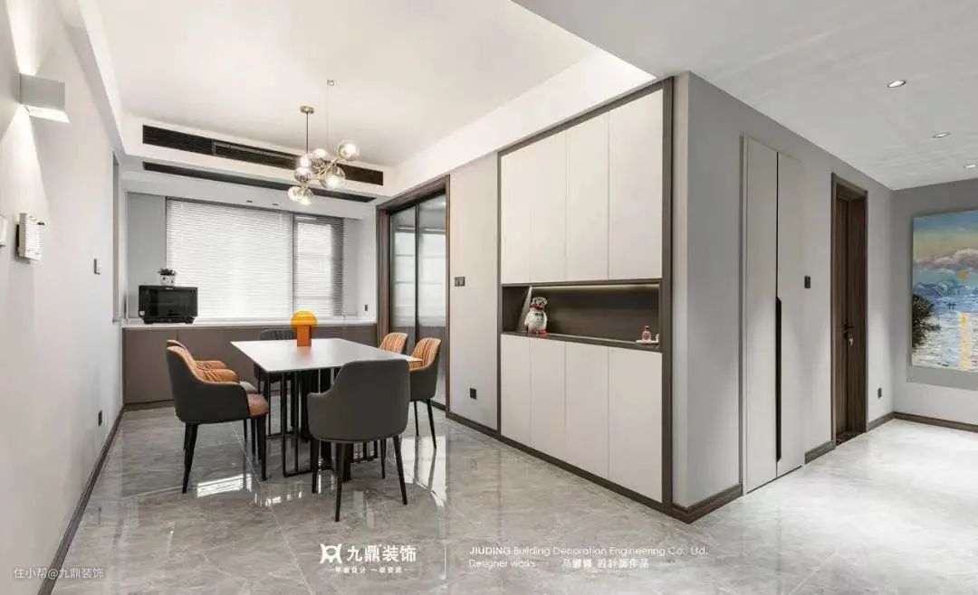 如果家里买成品的柜子和餐桌椅的话,可以选择一整套,颜色相似、风格统一,与家里整体家具更加融合,餐边柜还有一个最大作用,就是可以当作隔断,有些家庭是开放式厨房,或者想把客餐厅隔开,就可以用餐边柜来代替隔断。