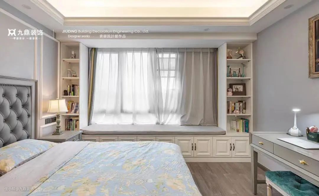 若家里有飘窗千万别浪费空间,别看小小空间,打成一个U型的窗台,两边的柜子可以当做书柜、化妆柜、儿童玩具柜,窗台上铺一个垫子,平常坐在上面喝茶、看书。