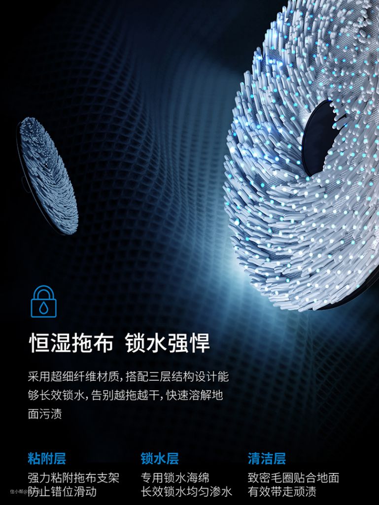 市面在售的所有旋转拖布机型,均是通过长绒拖布自身吸水从而保证湿拖,但是这种方式不可避免的问题就是越拖越干;