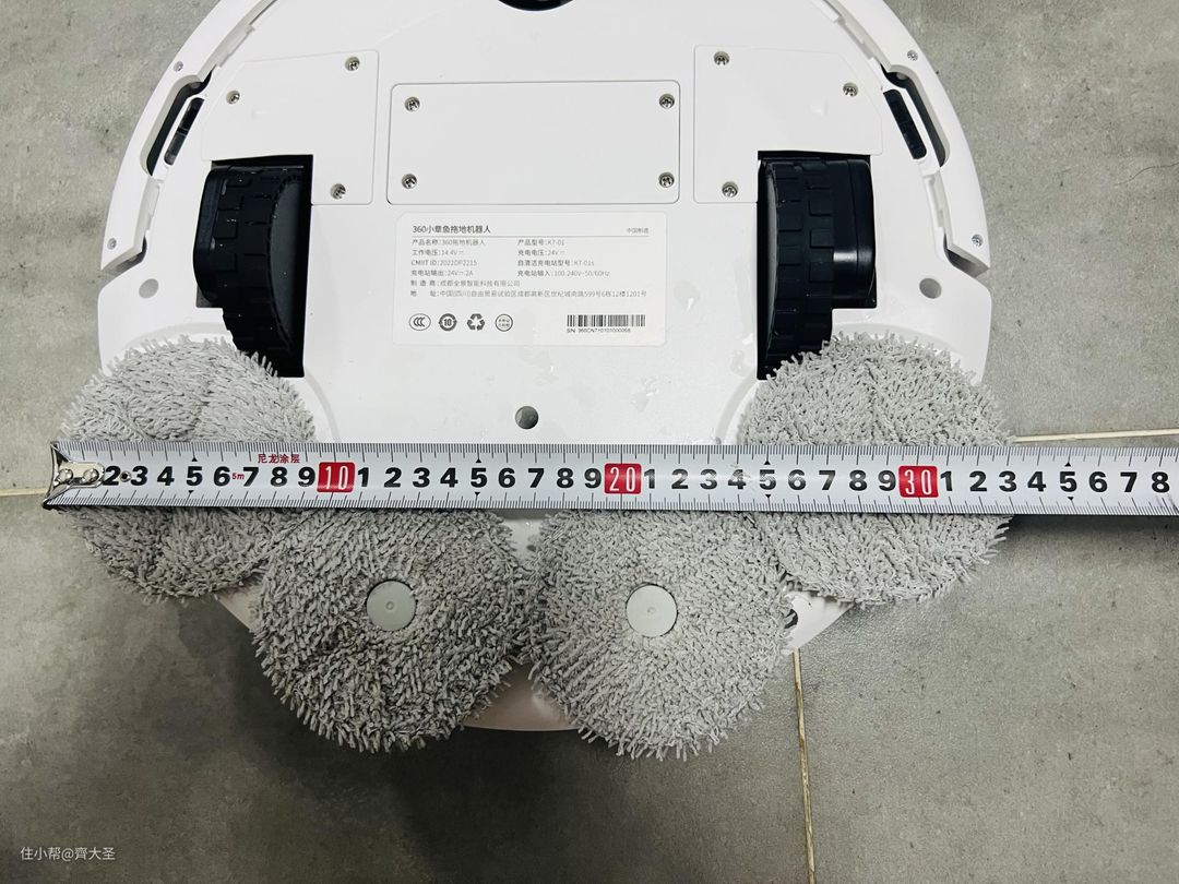 通过测量可以看到,拥有4个拖布的360拖布宽度最大,达到了330mm;
