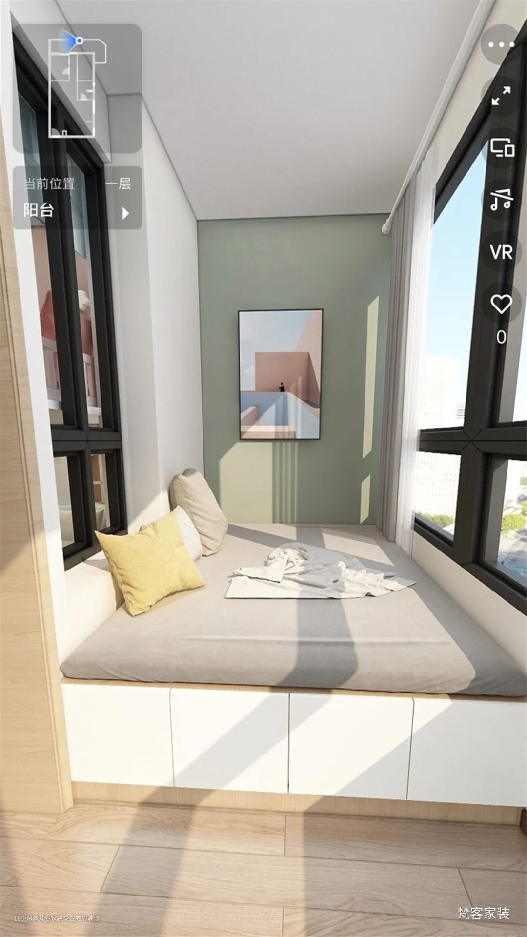 - 原阳台,改为爸爸的榻榻米+阳光房