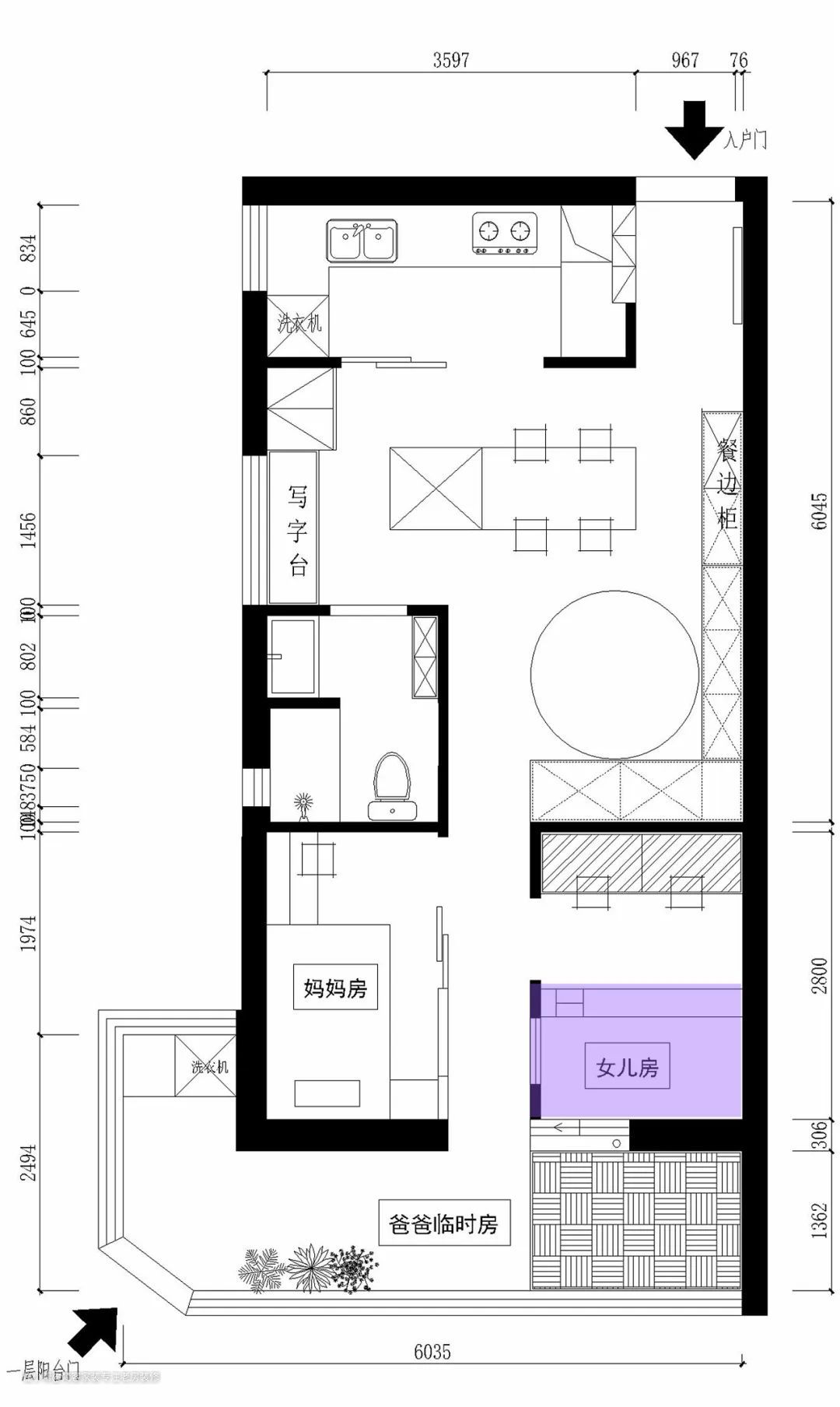 这是一个四口之家(一对双胞胎女宝宝)。为了孩子上学方便,准备进行二次装修。