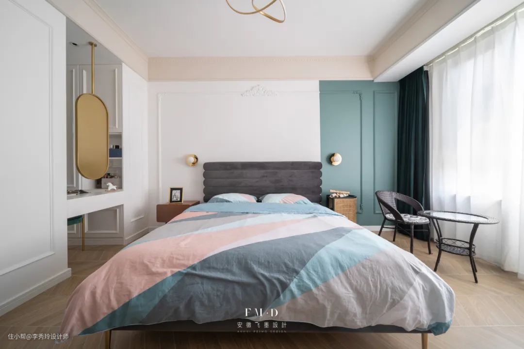 大白墙配彩色墙,通过色彩的拼接碰撞,来让视觉效果高级: