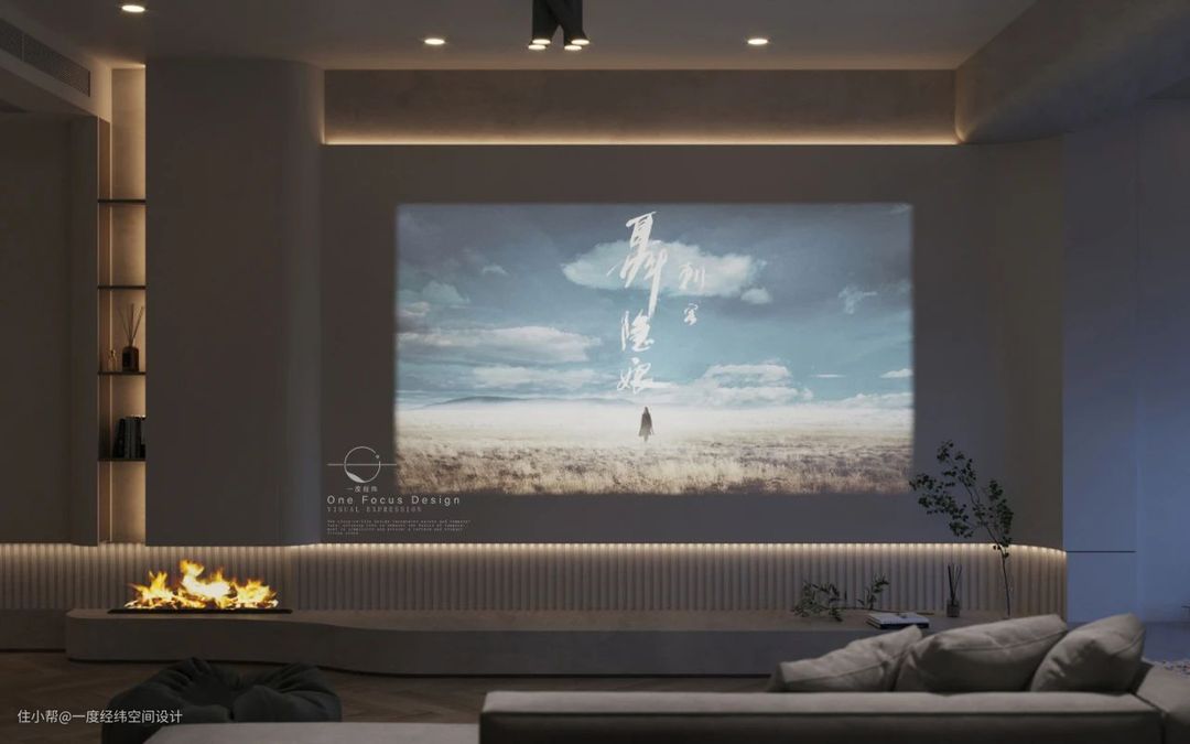 客厅抛弃了传统的电视,改用家用投影仪。背景墙上镶嵌的灯光为空间增添别样的氛围感,在不同的面板上展现不同的迷人感受,配合投影仪的使用,让观影体验更加愉悦舒适。在节假日约上三五好友,窝进柔软的地毯或榻榻米,足不出户也能拥有私人影院的体验。