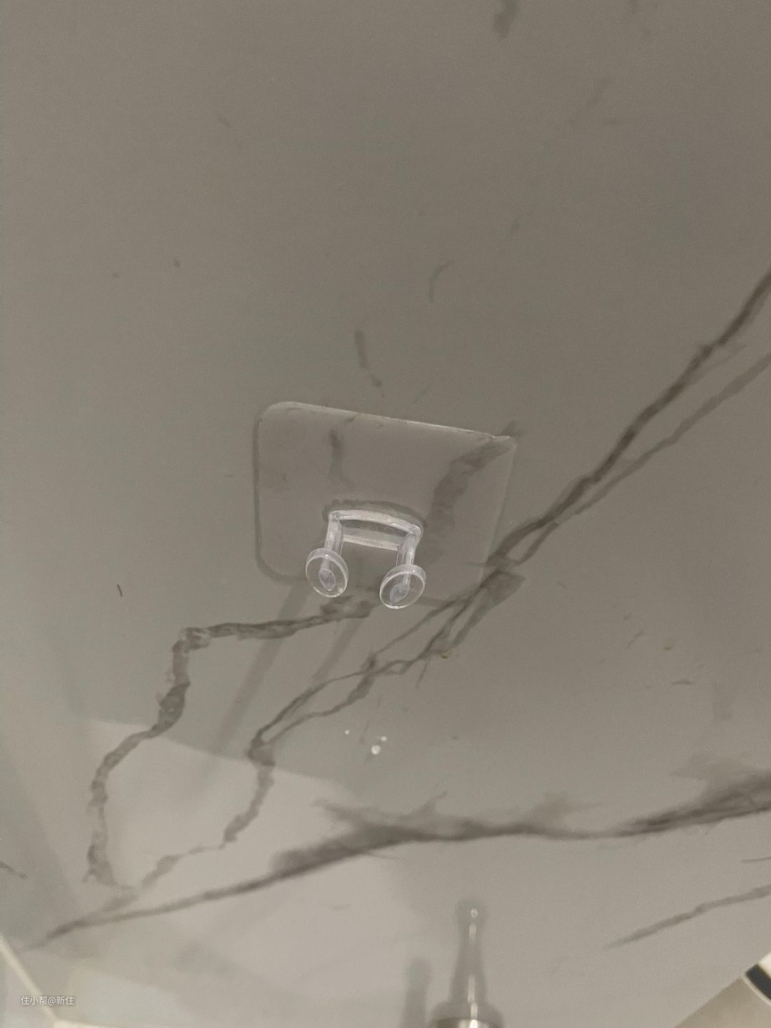 其实,一个小技巧就能解决,用这种脸盆收纳挂钩,贴在墙面上,盆直接挂上去就好了,极大地释放地面空间。