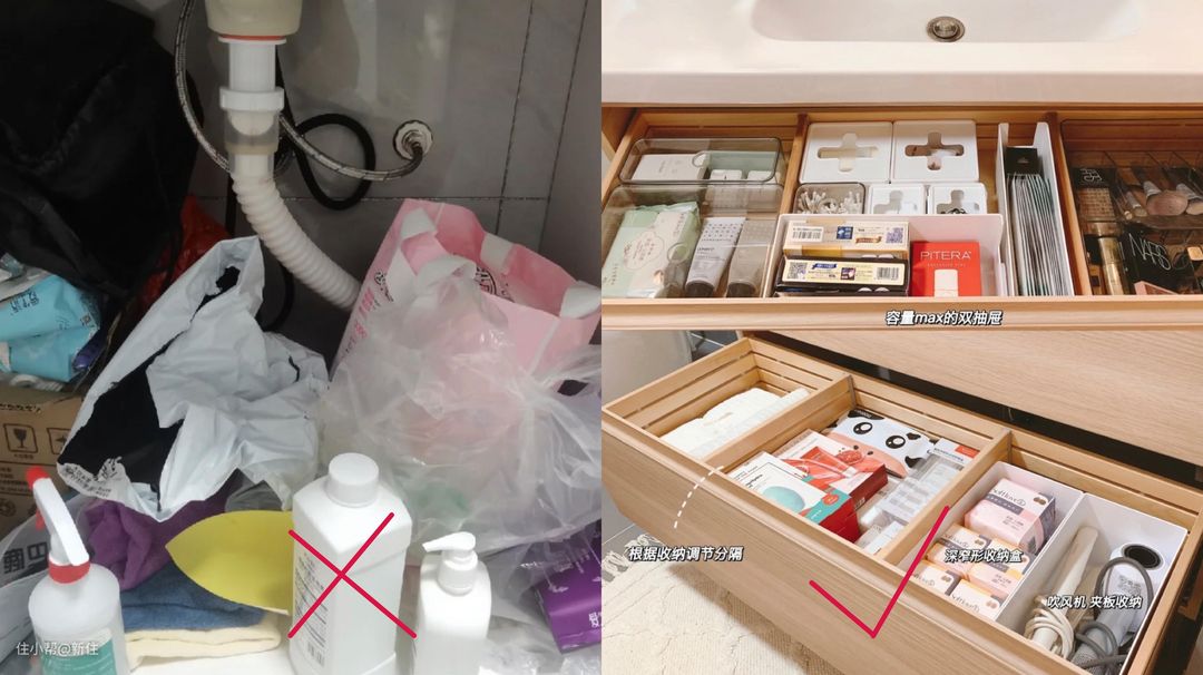 只要掌握了这个方法,领会了思路,你会发现,台面上不摆放洗漱用品并不是什么难事儿。