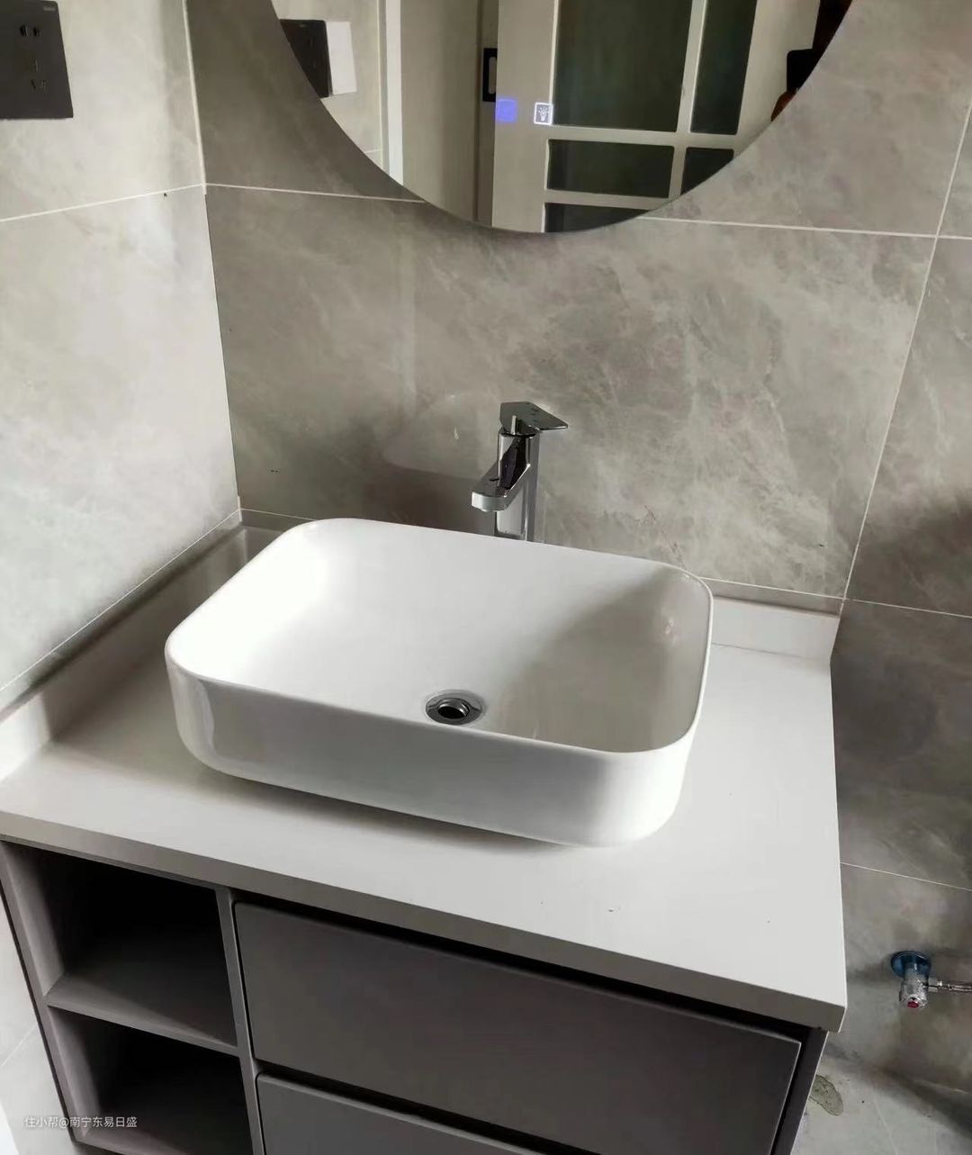 通常我们把高于台面的洗脸盆称之为台上盆,由于它是单独置放在台面的,因此它的造型不受拘束,有正方形、长方形、圆形、椭圆形等形状,有较好的装饰效果,在家庭卫生间中使用得较多。台上盆的安装比较简单,我们只需按安装图纸在台面预定的位置开孔,然后将台上盆放置于孔中,用玻璃胶将缝隙填实即可。