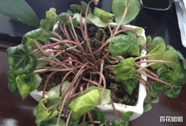 仙客来也是典型的“不耐热”花卉,很多花友反应,进入夏季后,仙客来会黄叶、枝干发软,最后全部趴下,其实只是“假死”。