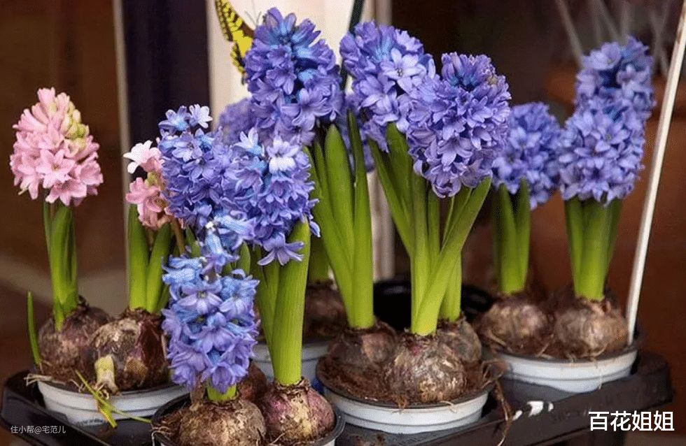 风信子不仅花朵漂亮,花期还特别长,秋、冬、春三季都可以开花,到了夏季就枯萎,以至于很多人误以为风信子是一次性花。