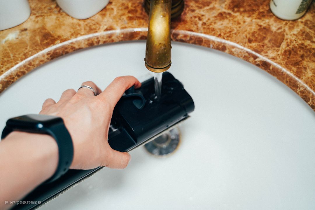 有时候觉得光是吸灰尘不够,还可以用自带的地拖配件,接上水