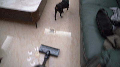 ▲云米Spuer S对付狗毛是一点事都没有了,可以安心使用,甚至都不用来回拖,一次过就能把大量的狗粮轻松吸进去