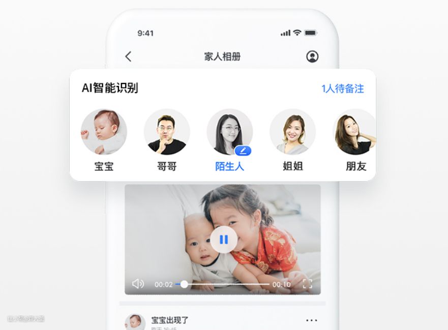 这一功能也是人形识别的进一步升级,可以精细到人脸。我们可以提前标识出家庭成员的面部信息,摄像头会通过算法自动匹配人物,并支持按人物进行视频筛选,高效找到有用信息。
