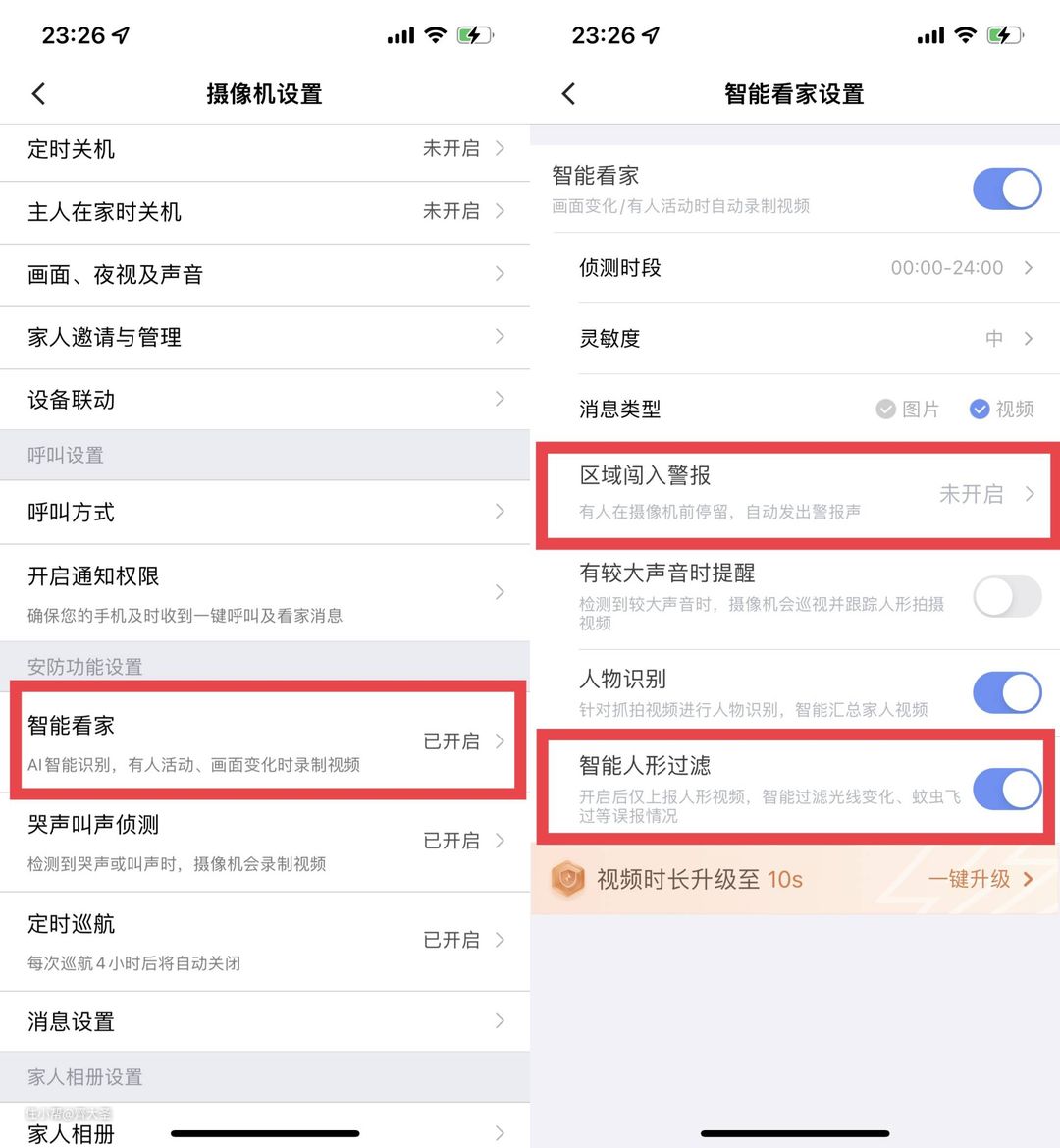 购机免费赠送7天循环5秒异动小视频录制,推送时间间隔五分钟。如果觉得5秒时长太短,也可付费升级为10秒,收费25元/半年。