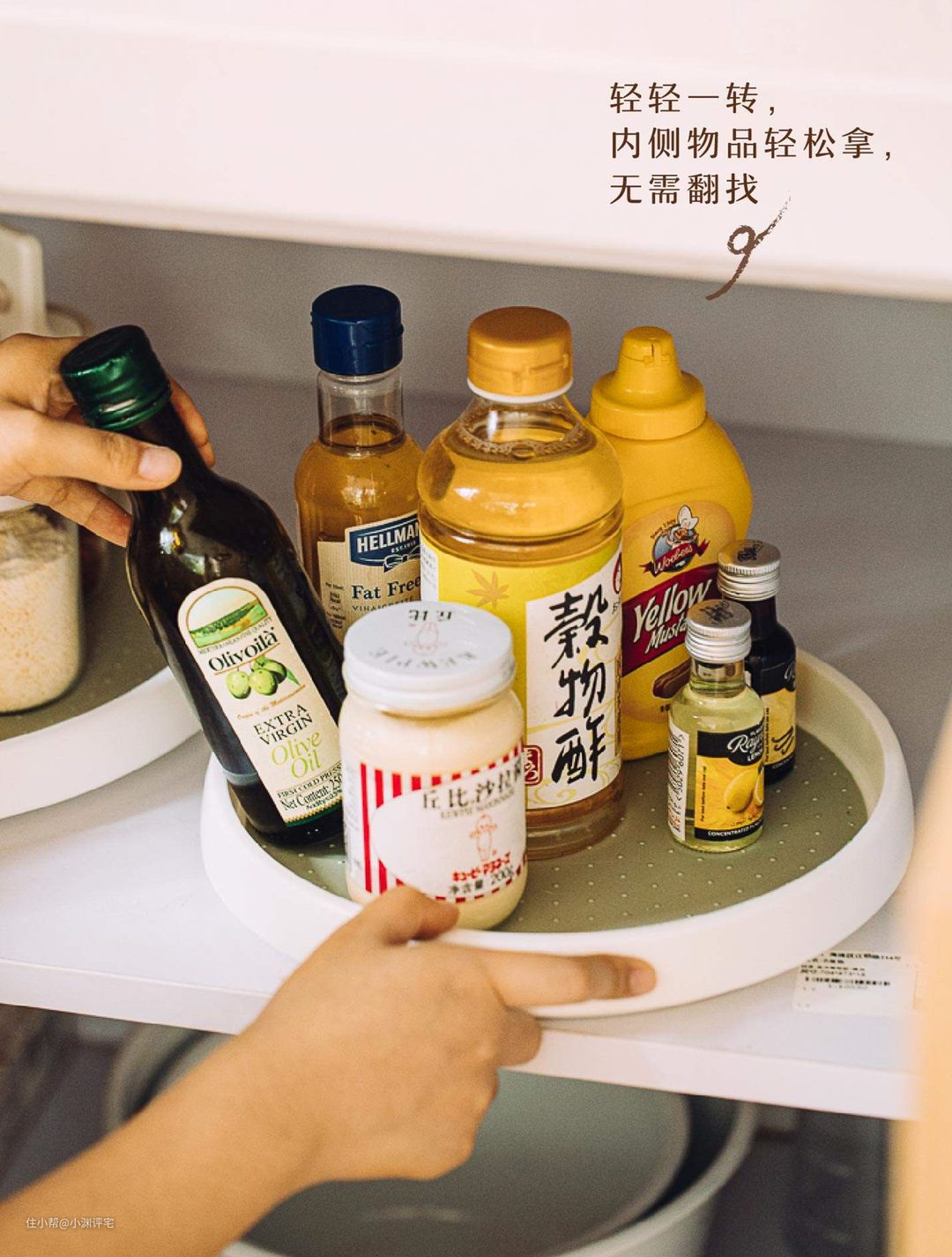 有一些是旋转的圆盘调料架,有一些是圆形的开放式置物架▼