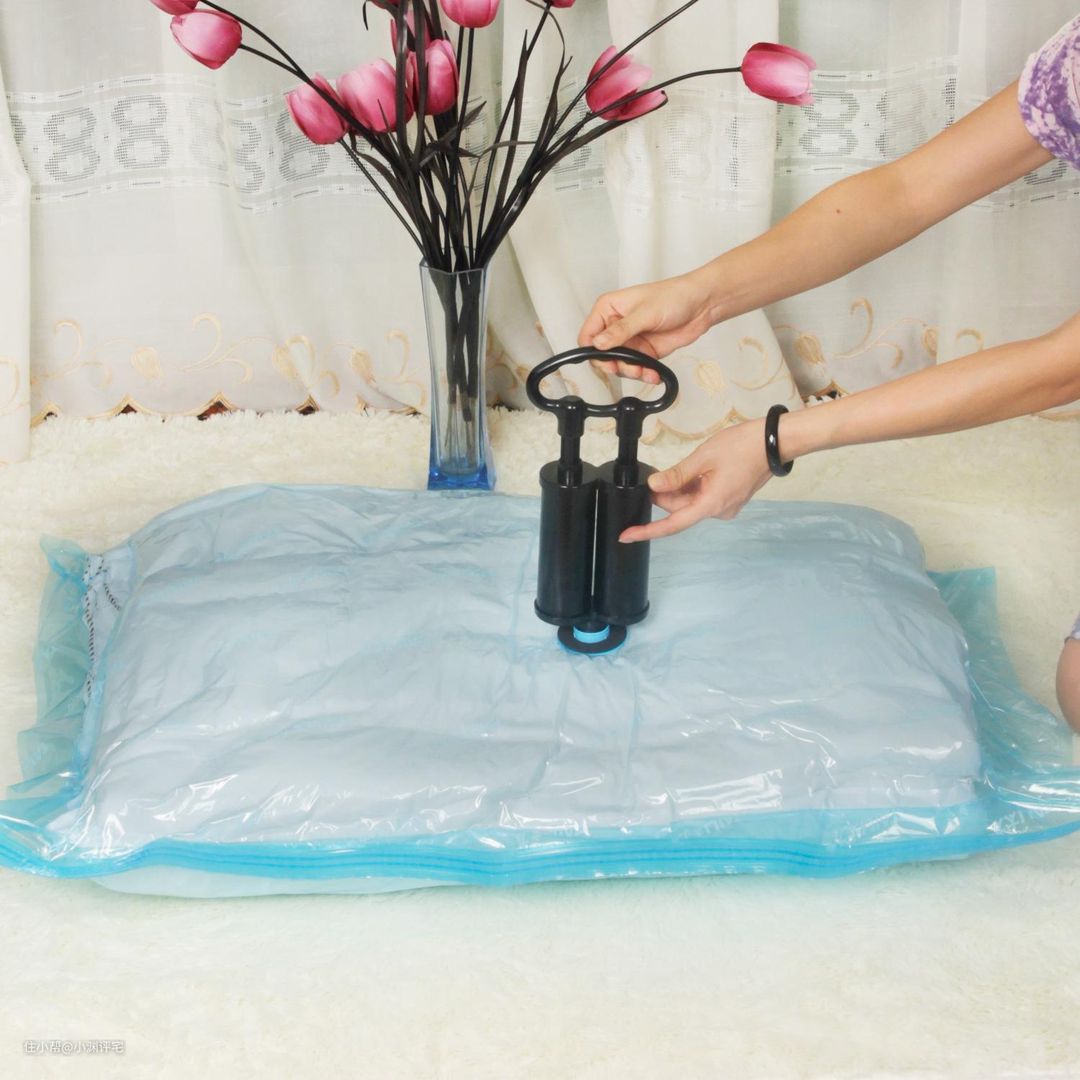 现在家庭中的大型收纳空间越来越少,一些厚被褥怎么收纳呢?于是真空压缩袋就出现了:先把被子放进压缩袋里,再抽真空。叠起来30cm厚的被子,抽真空以后能变成3cm。