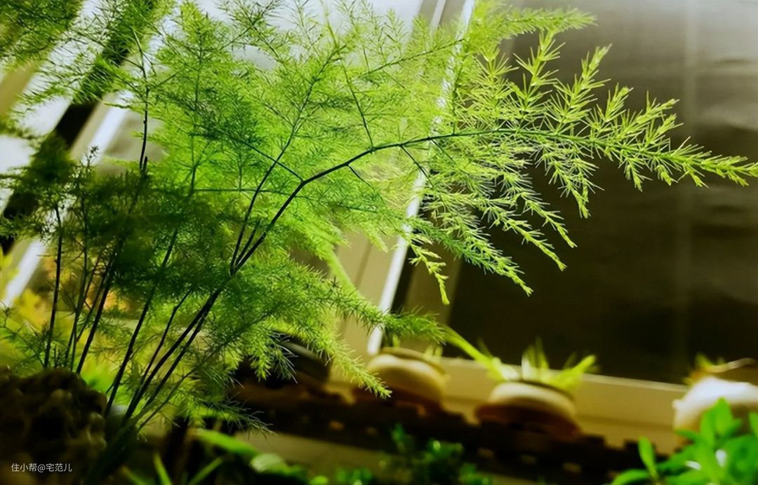 文竹气质文雅,养在客厅、书房、办公室,能增添书香之气。