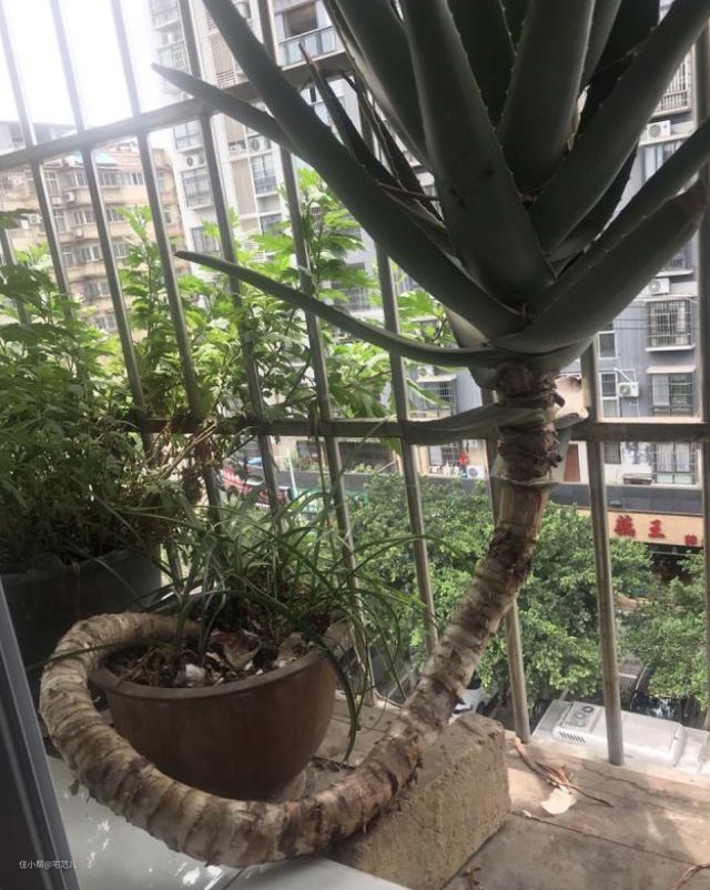 这株芦荟还特别爱爆“小崽”,发育出的小苗,切下来晾下切口后,扦插到花盆里,很快就会得到一株株新的芦荟,分发给邻居、朋友们,大家非常喜欢。