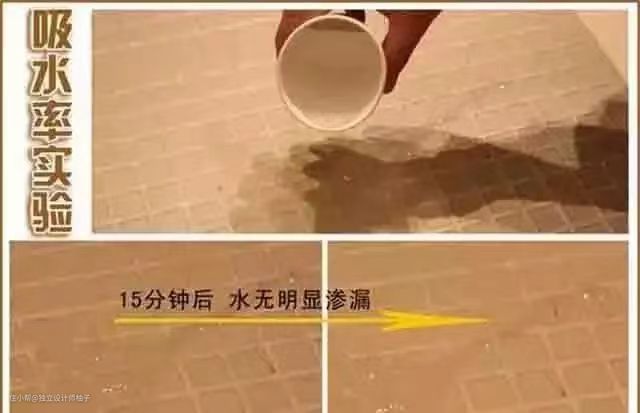 - 在瓷砖背面倒水,等一段时间看看吸水的速度,地砖质地硬,吸水率低,倒上去的水基本不会有什么改变。