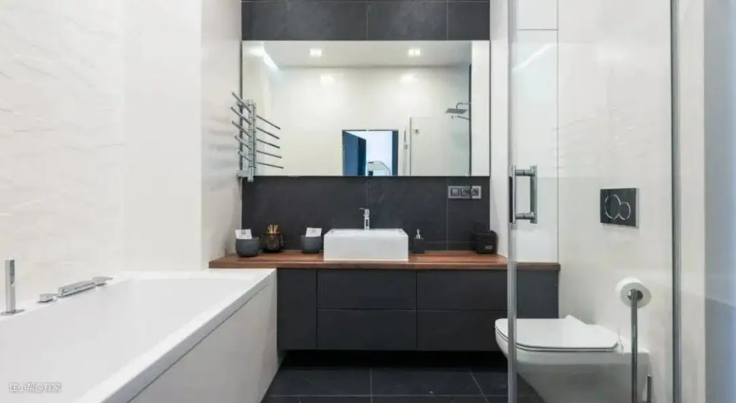 中国卫生间的平均面积大约是3-6㎡,我们要在这个空间内完成洗漱,卫浴等活动,说实话着实有点拥挤。所以洗手台可以选择长1m宽0.6m即可,镜子一般与洗手台同宽。